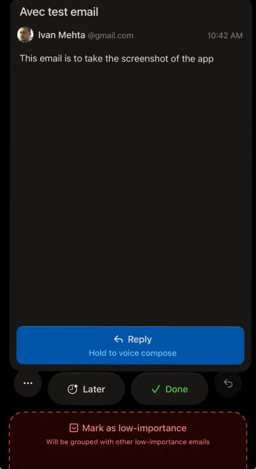 While managing your inbox, Aved lets you mark unimportant emails by swiping down a particular email. The email will learn from what’s put in the unimportant pile and can show it to you in a group instead of forcing you to triage these emails one by one.