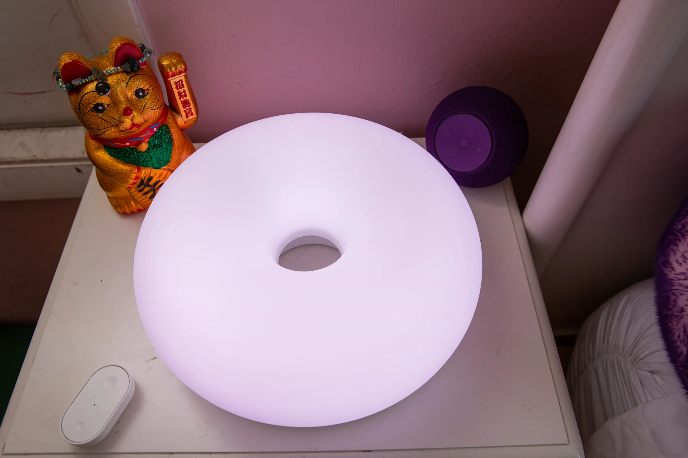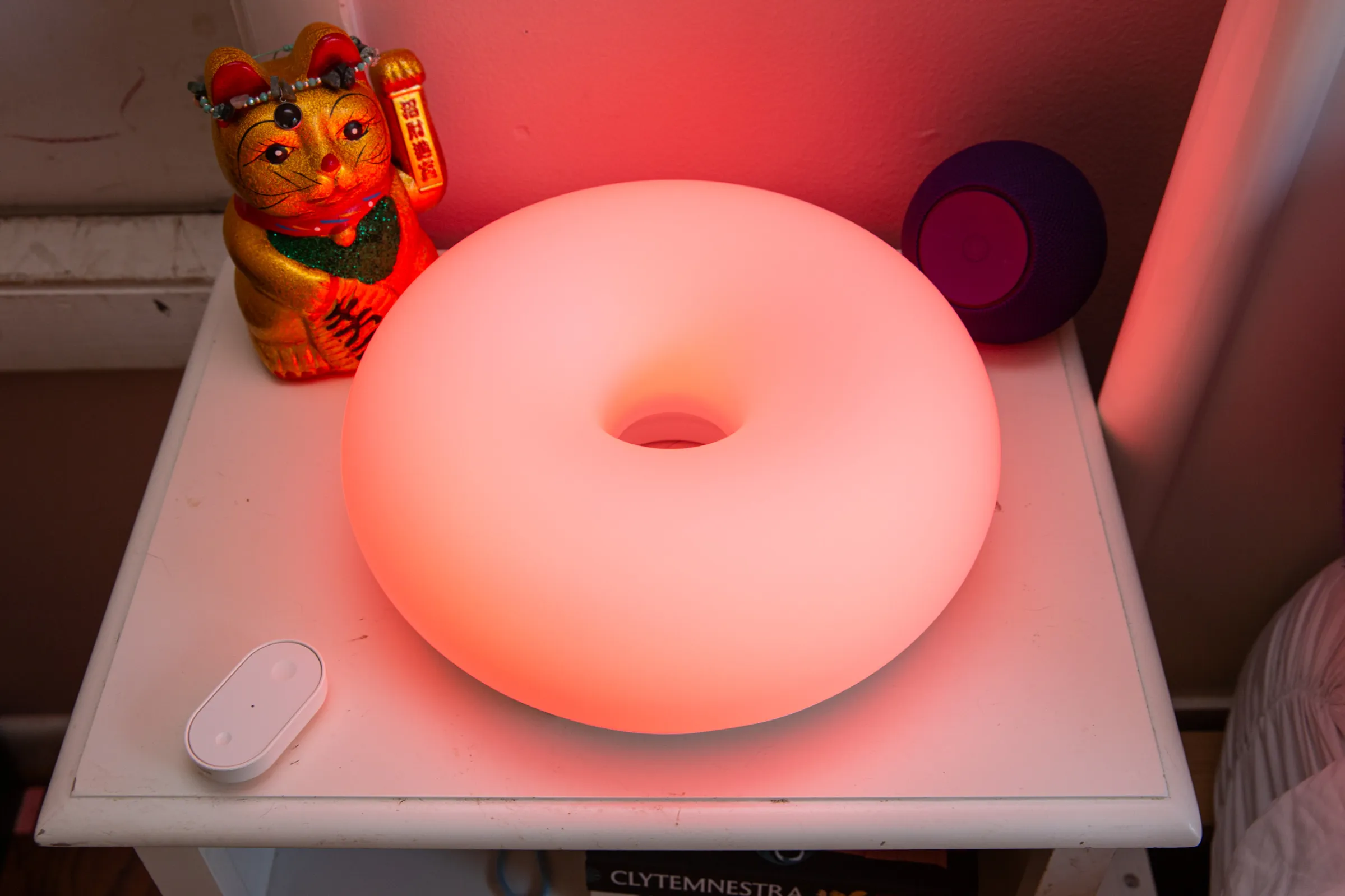 The donut lamp, as it’s known for its distinctive shape resembling everyone’s favorite sweet treat, can be wall-mounted or set flat on a table. It comes with a long power cable, which helps with placement, and differs from its non-smart counterpart in that it has a matte finish rather than the original’s glossy glow. The matte does look quite stylish and helps accentuate the new colors — the old version only glows orange.